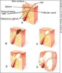 The dictionary defines acne as "an inflammatory disease of the sebaceous glands, characterized by comedones and pimples, especially on the face, back, chest, and, in severe cases, by cysts and nodules resulting in scarring."
